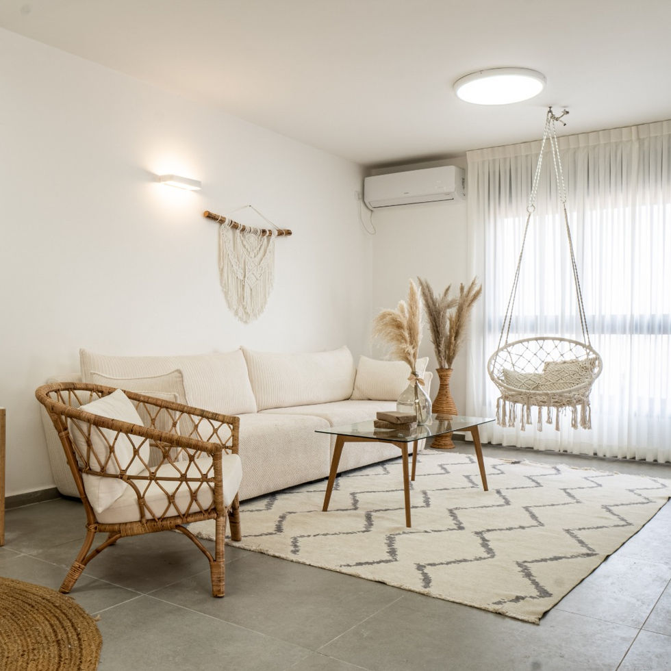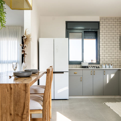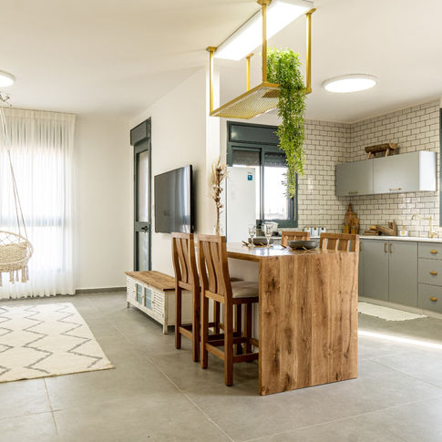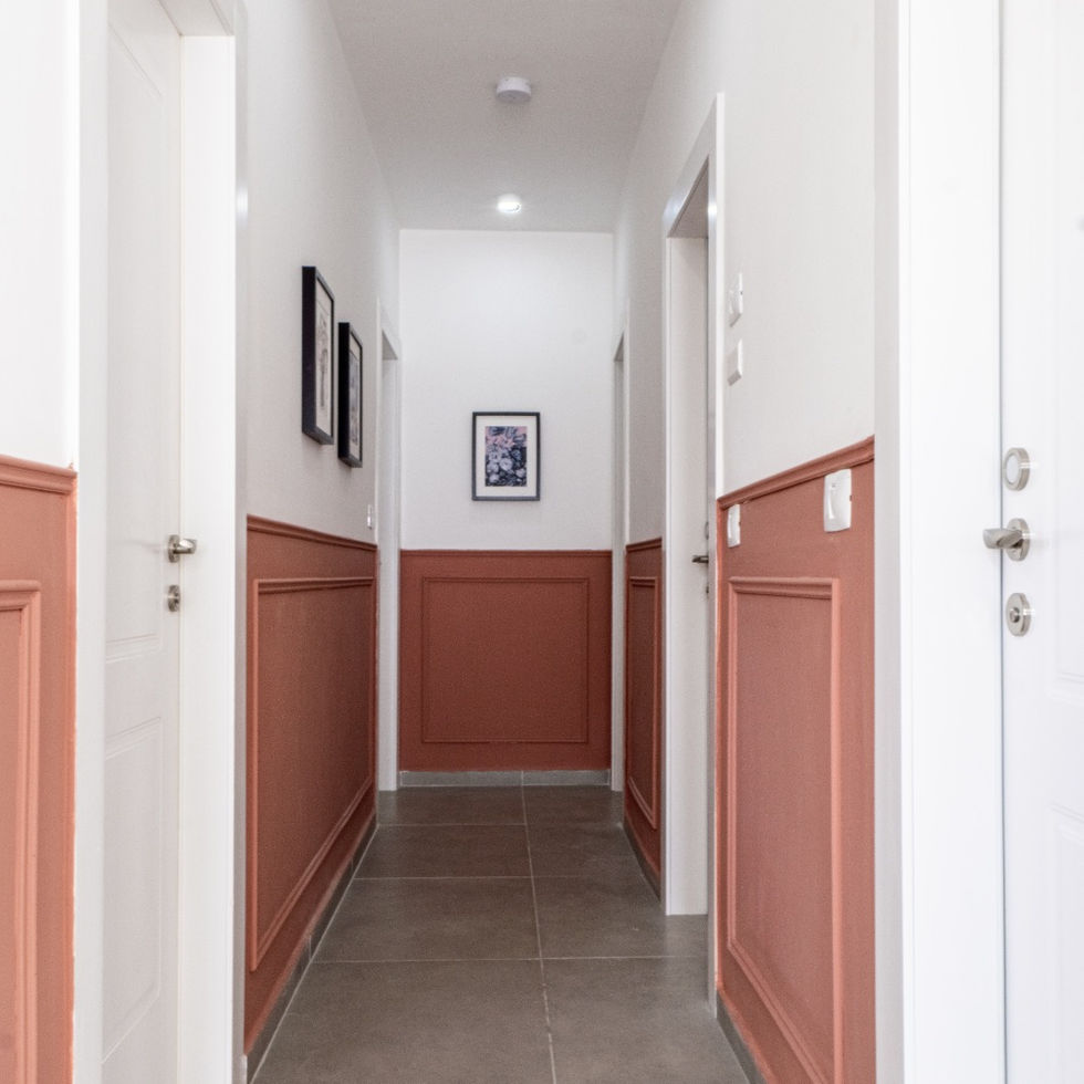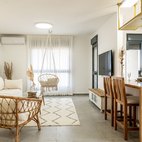 שדרוג דירת קבלן ע"י הלבשה וצבע בלבד בתקציב מוגבל. דירת 6 חדרים שפוצלה ל-2 דירות בנות 4 חדרים עבור שני אחים. דירה זו עוצבה עבור זוג חיילים לפני חתונה, בתקציב מוגבל. היא חיילת בודדה, הוא קצין בקבע.צביעה מעניינת ושימוש בפלטה עדינה לבקשת בעלי הבית הניבה תוצאה בהירה ומוארת של בית לבן, מזמין ונקי.