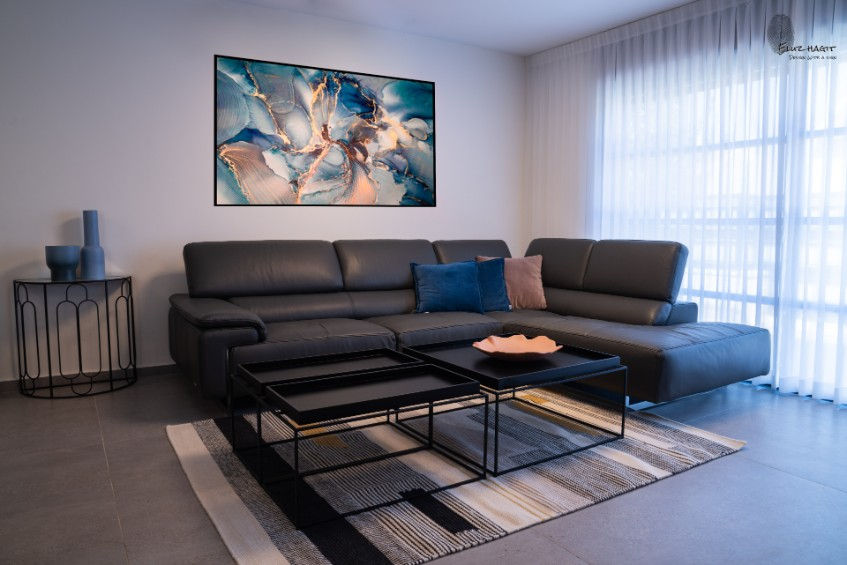 תכנון ועיצוב מלא עבור זוג עם שלושה ילדים בוגרים , בדגש על משרד ביתי בצבעי חמרה חמים עבור הבעל שעובד מהבית , בשילוב קמין בסלון לאווירה נעימה, ואריח פרחוני בחדר הרחצה של ההורים בגוונים של כחול וירוק . חדר הרחצה של הילדים והאורחים בגוון בטון ניטראלי עם קריצה של כיור ורוד. נגיעות ושילובי צבעים .